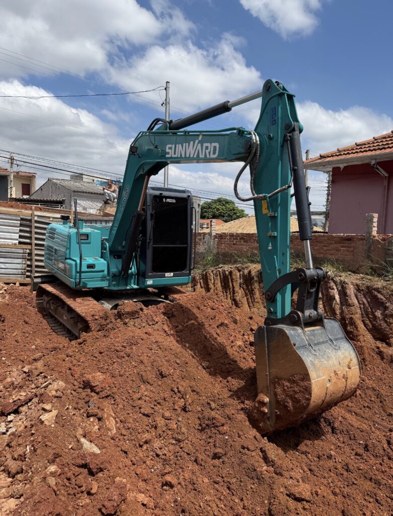 Nivelamento e preparação do terreno para construção, garantindo uma base sólida e segura.